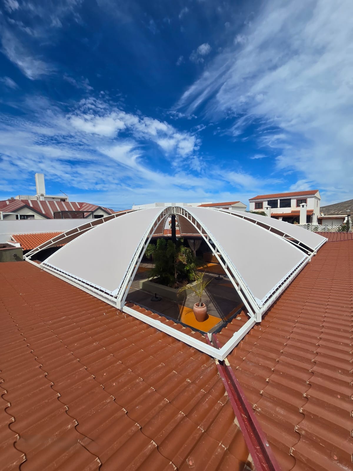 Pensada principalmente para locales comerciales, terrazas de hostelería, hoteles o espacios públicos, también puede instalarse en viviendas privadas, siempre que el espacio lo permita. Su capacidad para cubrir amplias superficies con elegancia y protección frente al sol, el viento o la lluvia la hace ideal para espacios que buscan combinar comodidad y diseño.